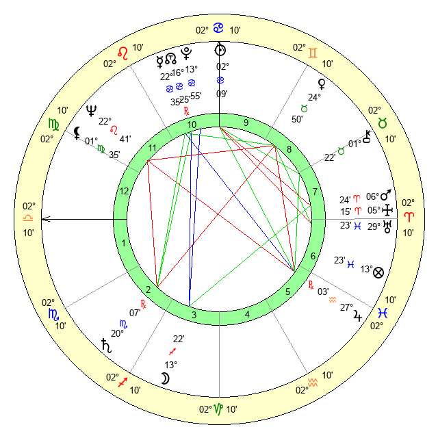 | Sun | 2 Cancer 10 | 3 Cancer 12 | 7 Libra 30 |