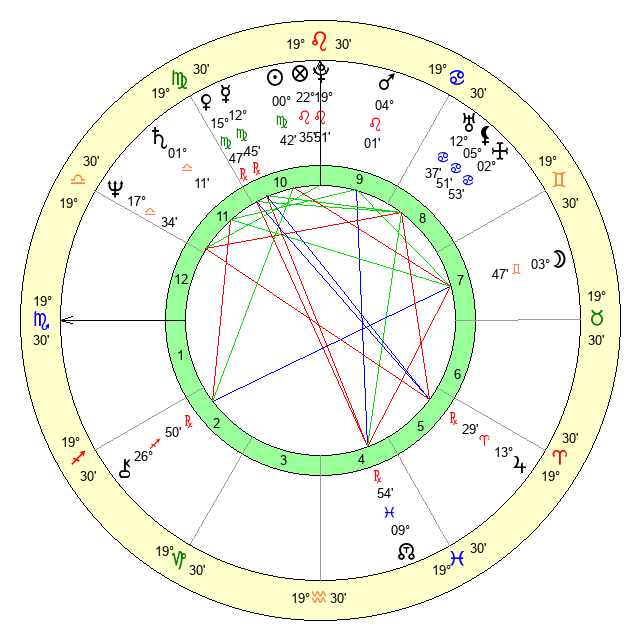 | Mercury | 12 Virgo 45 | 22 Leo 31 | 26 Scorpio 17 |