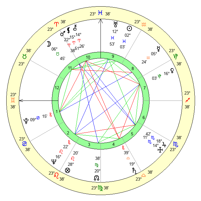 | Moon | 6 Taurus 40 | 14 Sagittarius 3 | 11 Aquarius 3 |