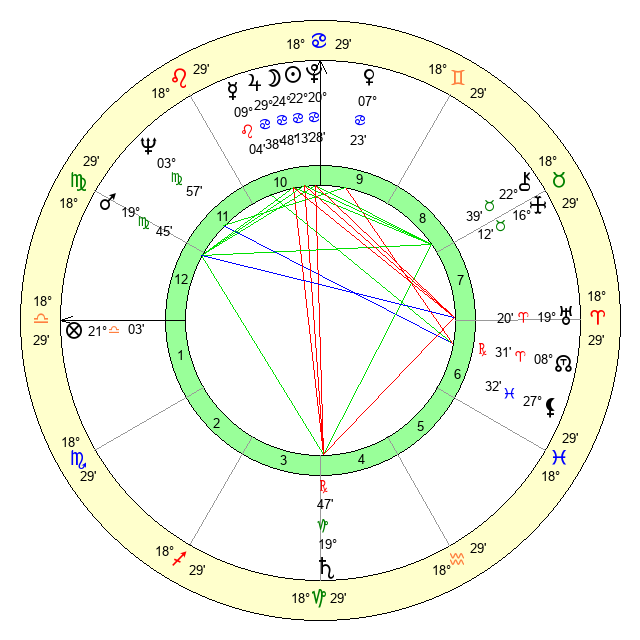 | Venus | 7 Cancer 24 | 12 Gemini 20 | 3 Scorpio 49 |
