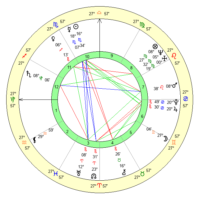 | Neptune | 5 Virgo 33 | 29 Pisces 37 | 4 Virgo 43 |