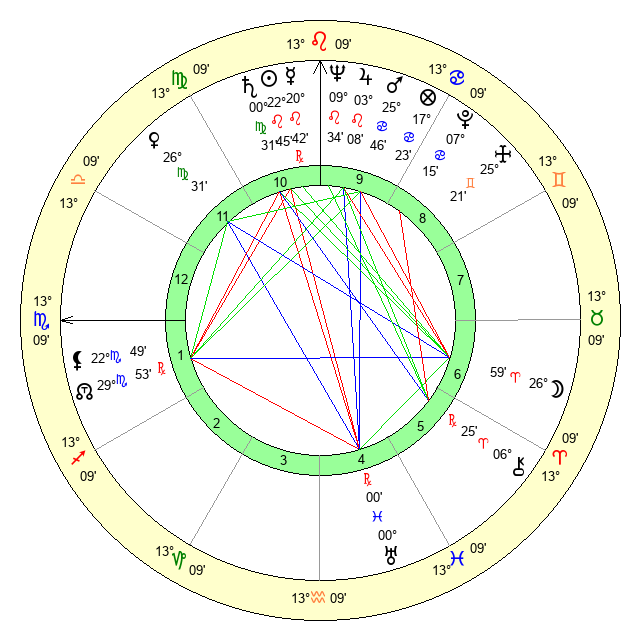 | Saturn | 1 Virgo 10 | 0 Aries 51 | 11 Virgo 54 |