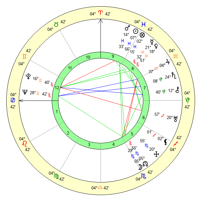 | Sun | 7 Pisces 56 | 9 Pisces 6 | 7 Cancer 42 |