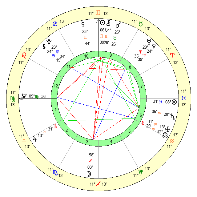 | Moon | 3 Sagittarius 55 | 29 Gemini 42 | 13 Aries 18 |