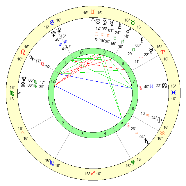 | Moon | 5 Gemini 18 | 19 Virgo 43 | 4 Scorpio 5 |