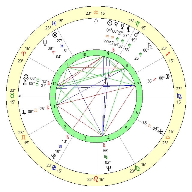 | Neptune | 2 Virgo 57 | 27 Pisces 46 | 0 Virgo 50 |