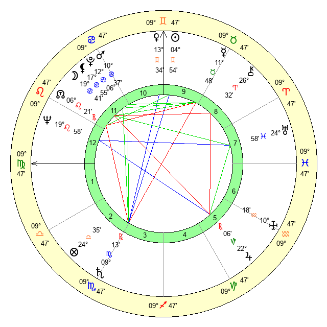 | Sun | 4 Gemini 54 | 5 Gemini 42 | 10 Virgo 39 |