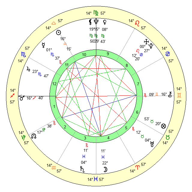 | Neptune | 15 Virgo 28 | 0 Aries 17 | 16 Virgo 39 |