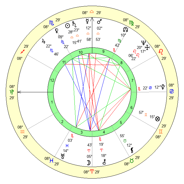 | Saturn | 24 Libra 15 | 26 Pisces 10 | 2 Scorpio 51 |