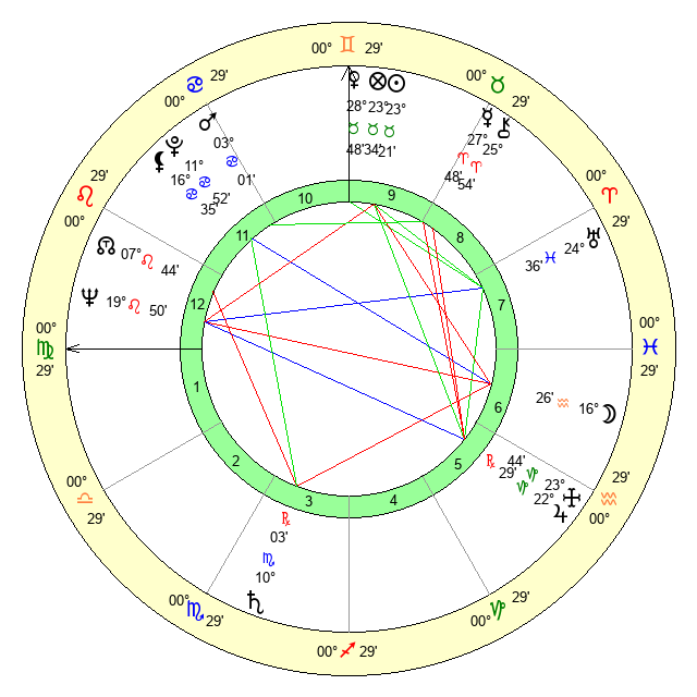 | Saturn | 10 Scorpio 39 | 29 Pisces 3 | 9 Scorpio 32 |