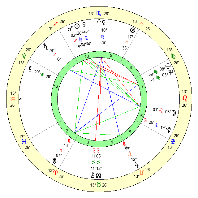 | Neptune | 3 Virgo 32 | 29 Pisces 27 | 2 Virgo 6 |