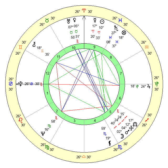 | Sun | 10 Aries 33 | 11 Aries 14 | 5 Cancer 35 |