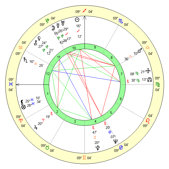 | Saturn | 16 Aquarius 52 | 25 Pisces 10 | 0 Pisces 0 |