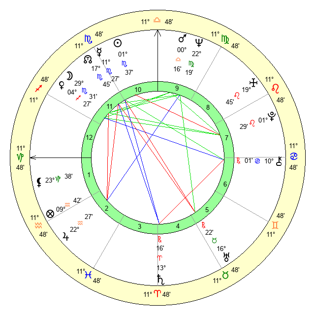 | Neptune | 22 Virgo 19 | 29 Pisces 54 | 23 Virgo 9 |
