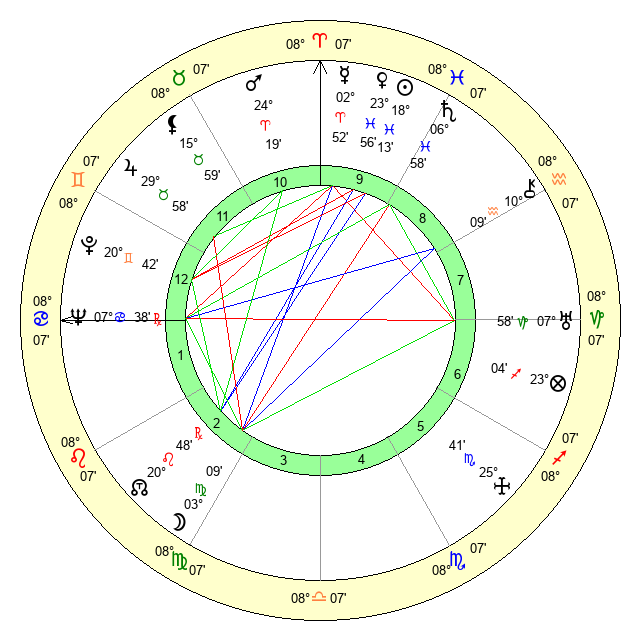 | Moon | 3 Virgo 12 | 26 Cancer 47 | 20 Capricorn 48 |