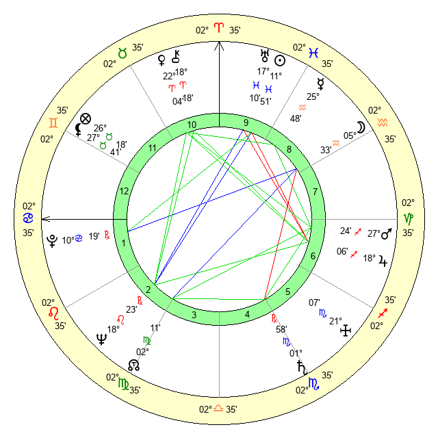 | Mars | 27 Sagittarius 25 | 17 Cancer 17 | 25 Aquarius 4 |
