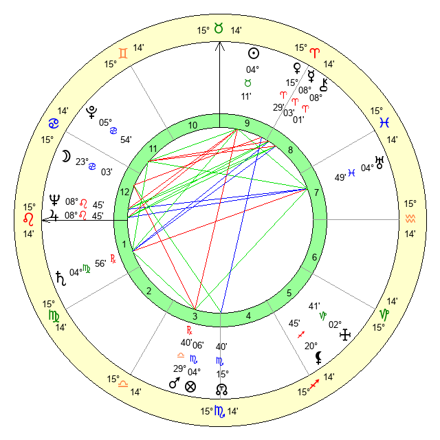 | Neptune | 8 Leo 45 | 0 Aries 53 | 11 Leo 24 |