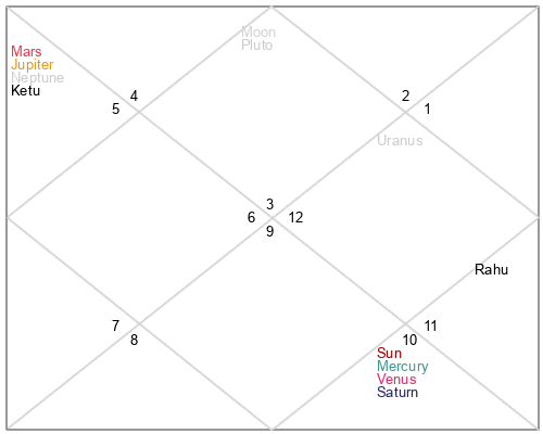 | Rahu | 8 Pisces 57 | 29 Pisces 33 | 4 Pisces 5 |