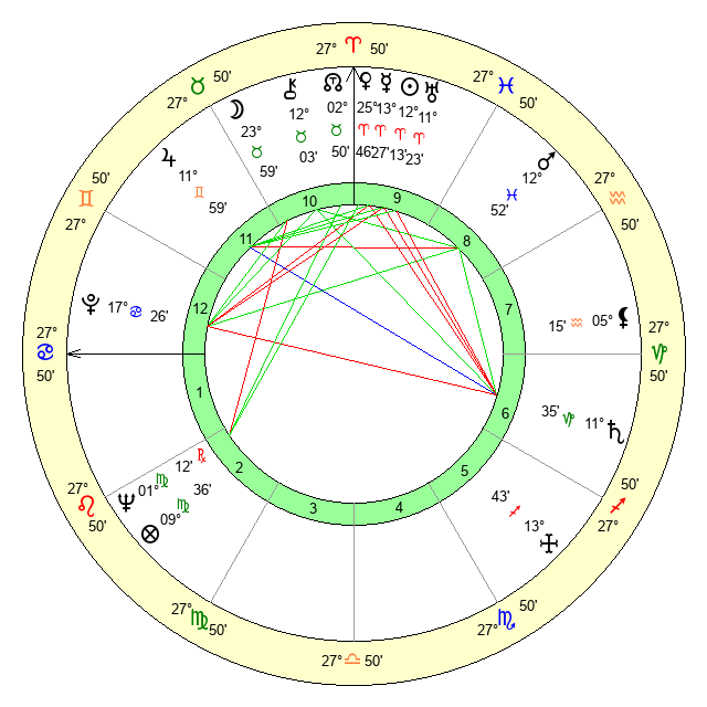 | Sun | 12 Aries 14 | 13 Aries 12 | 13 Cancer 52 |