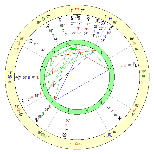 | Moon | 11 Gemini 25 | 25 Virgo 51 | 11 Scorpio 43 |