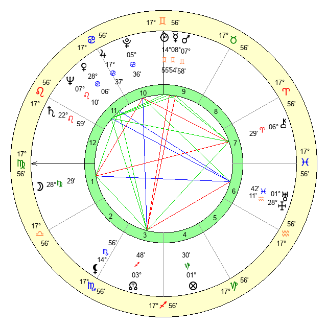 | Sun | 14 Gemini 55 | 16 Gemini 14 | 26 Virgo 40 |