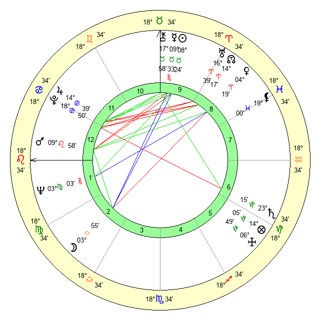 | Moon | 4 Libra 5 | 6 Gemini 33 | 14 Pisces 5 |