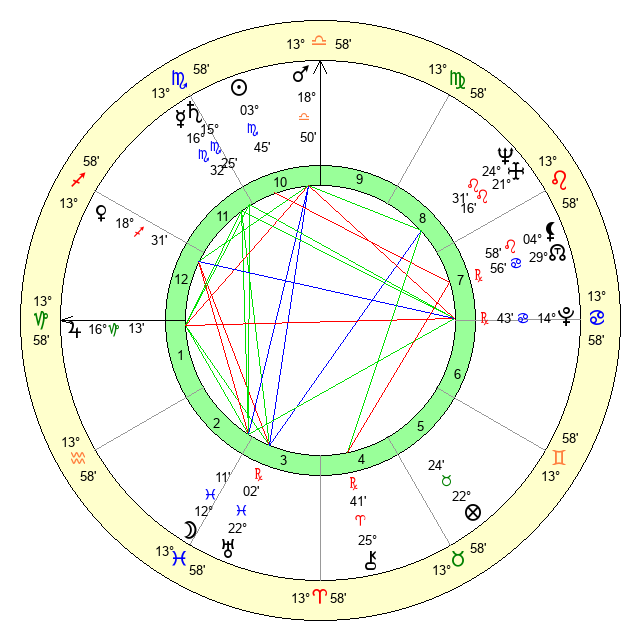 | Moon | 12 Pisces 13 | 12 Capricorn 8 | 0 Scorpio 6 |