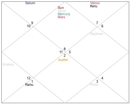 | Ketu | 10 Scorpio 32 | 13 Virgo 46 | 5 Scorpio 27 |