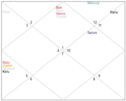 | Mars | 1 Virgo 46 | 2 Leo 47 | 10 Libra 34 |