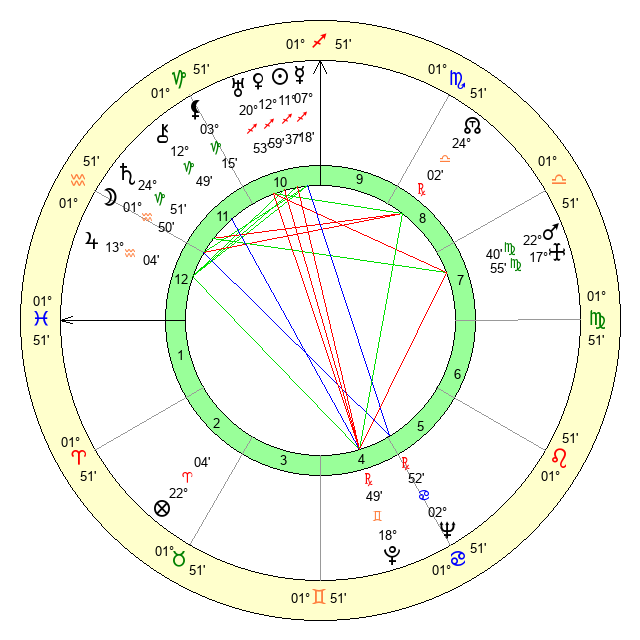 | Mars | 22 Virgo 40 | 22 Sagittarius 3 | 4 Libra 11 |