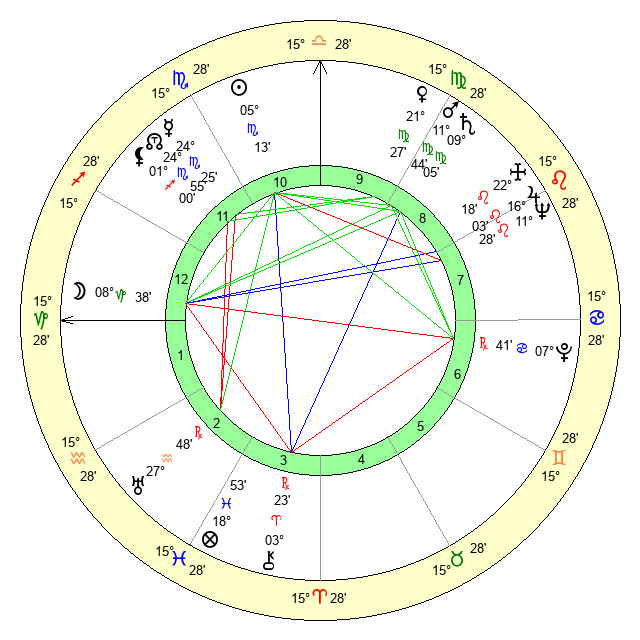 | Mars | 11 Virgo 44 | 25 Scorpio 50 | 3 Scorpio 56 |