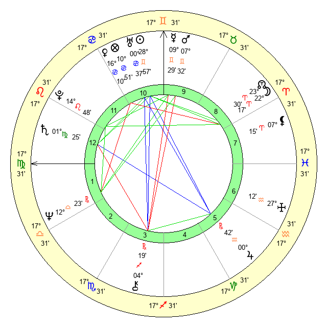 | Sun | 28 Gemini 58 | 29 Gemini 34 | 11 Virgo 46 |