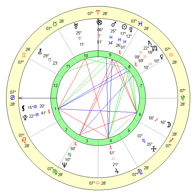 | Moon | 16 Sagittarius 53 | 13 Cancer 43 | 25 Aries 27 |
