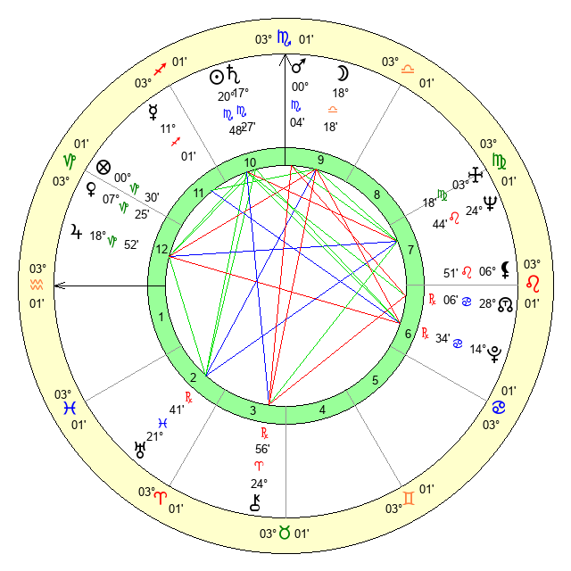 | Moon | 18 Libra 16 | 9 Virgo 1 | 27 Gemini 16 |
