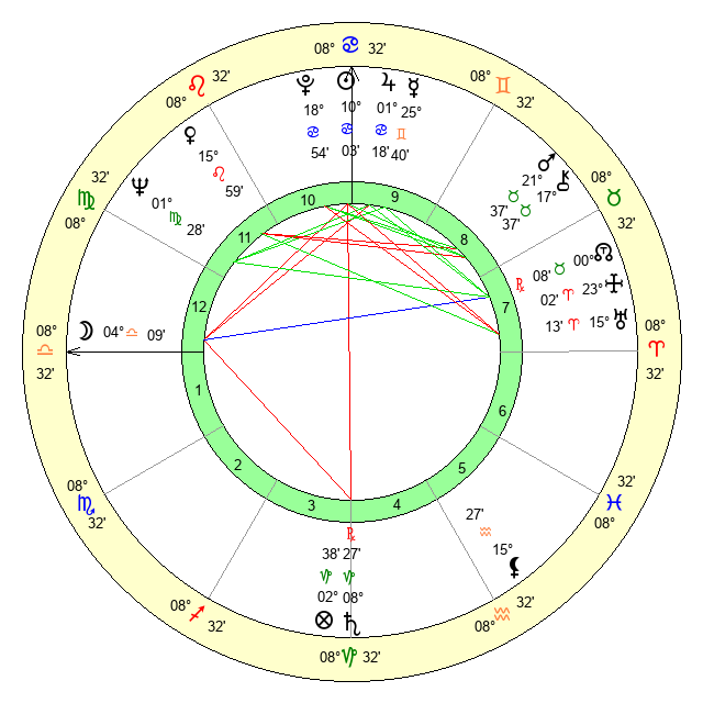 | Moon | 4 Libra 14 | 9 Libra 59 | 18 Pisces 35 |