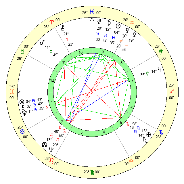| Moon | 12 Pisces 51 | 9 Capricorn 27 | 29 Libra 7 |