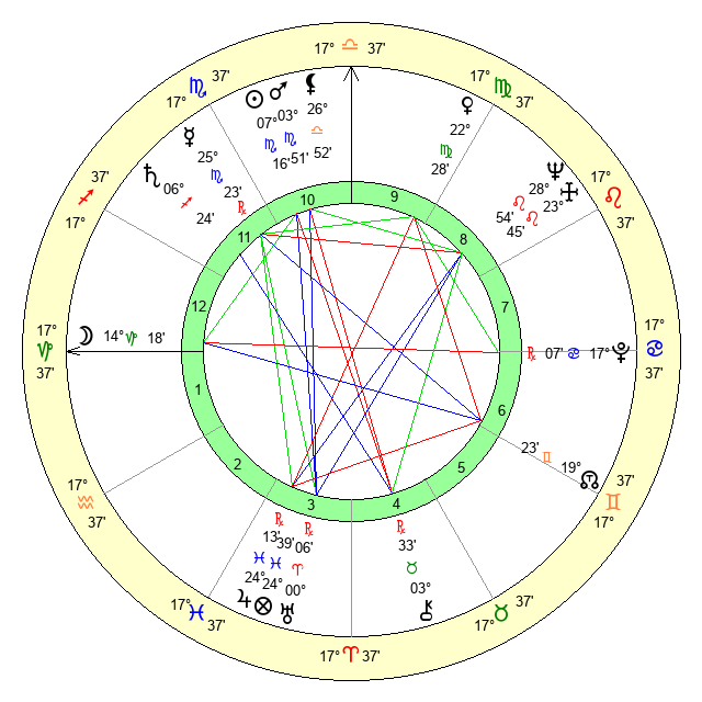 | Venus | 22 Virgo 28 | 22 Libra 12 | 10 Capricorn 31 |