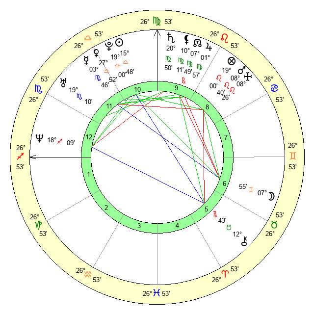 | Mars | 8 Leo 40 | 11 Scorpio 50 | 2 Virgo 7 |