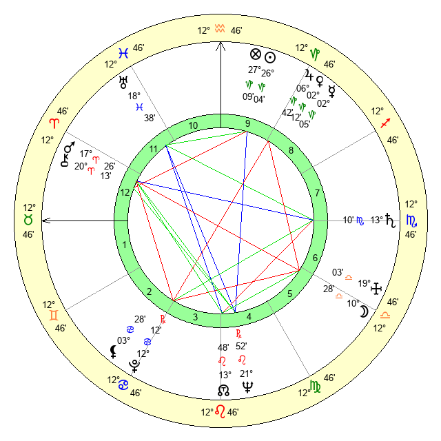 | Moon | 10 Libra 25 | 0 Virgo 4 | 17 Gemini 34 |