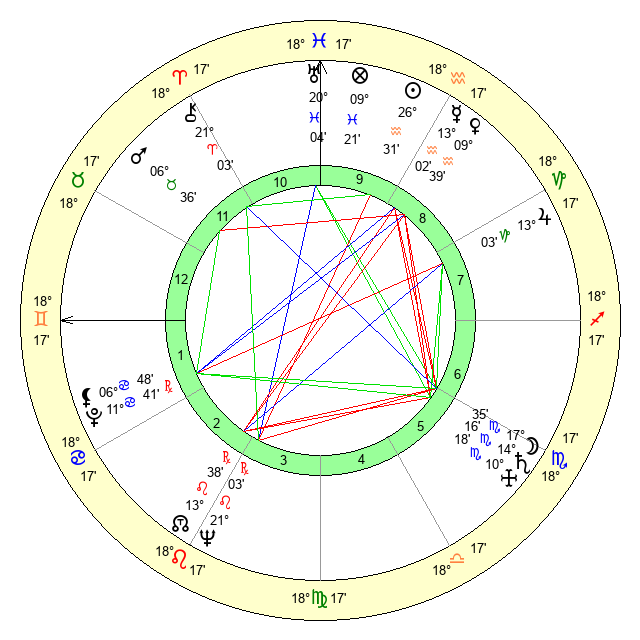 | Moon | 17 Scorpio 36 | 2 Libra 31 | 19 Cancer 39 |