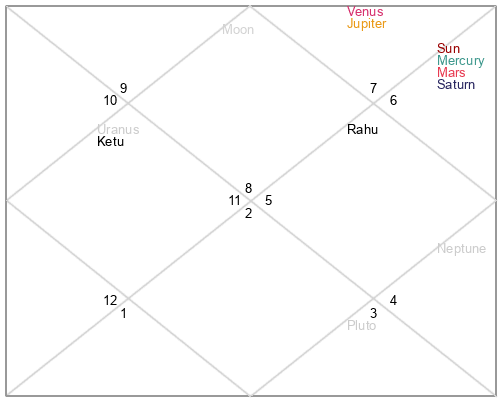 | Rahu | 9 Virgo 12 | 16 Pisces 21 | 3 Virgo 48 |