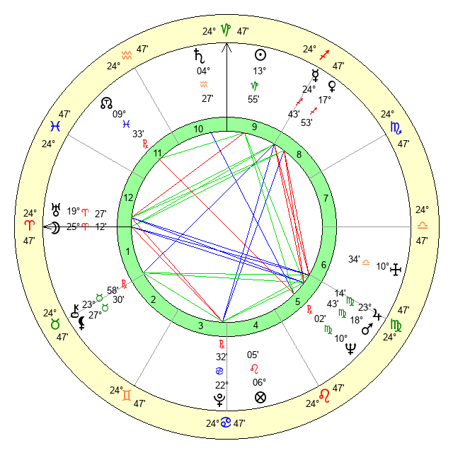 | Moon | 25 Aries 14 | 14 Pisces 47 | 26 Leo 21 |