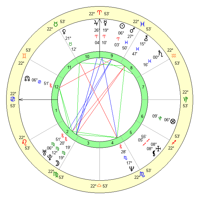 | Mars | 27 Pisces 51 | 21 Cancer 58 | 14 Taurus 13 |