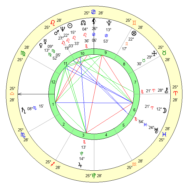 | Venus | 13 Virgo 53 | 9 Cancer 53 | 10 Capricorn 37 |