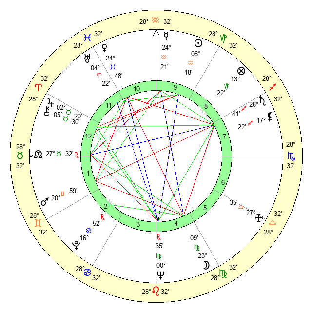 | Moon | 23 Virgo 9 | 28 Capricorn 29 | 14 Pisces 21 |