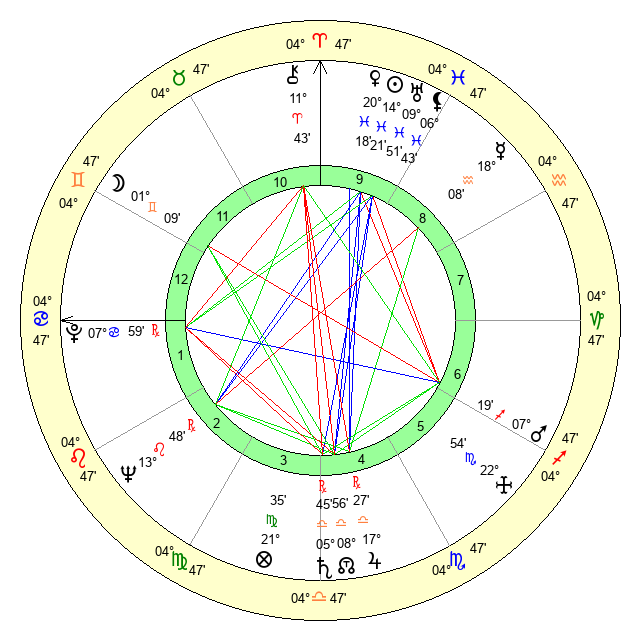 | Saturn | 6 Libra 29 | 21 Pisces 11 | 1 Libra 38 |