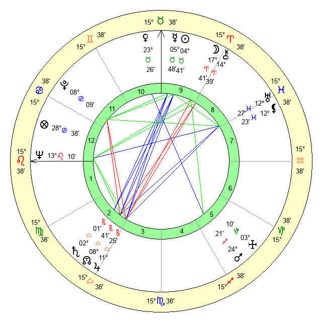 | Neptune | 13 Leo 9 | 0 Aries 55 | 15 Leo 36 |