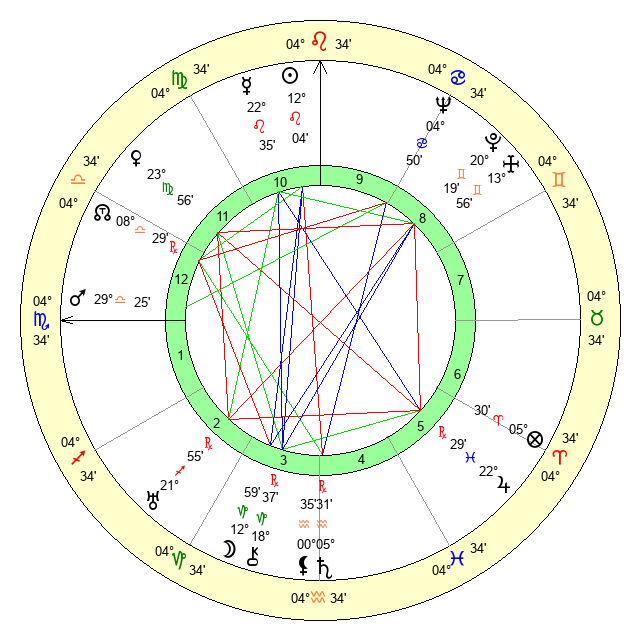 | Mercury | 22 Leo 36 | 5 Leo 52 | 20 Sagittarius 12 |