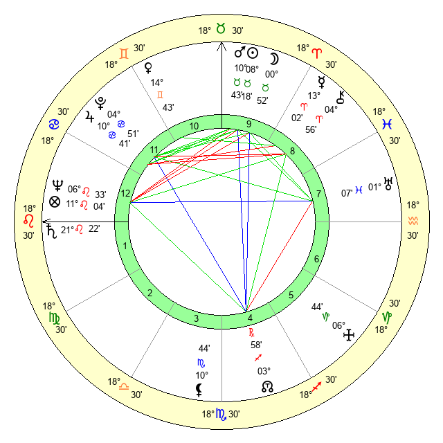 | Mars | 10 Taurus 43 | 5 Leo 0 | 23 Cancer 49 |