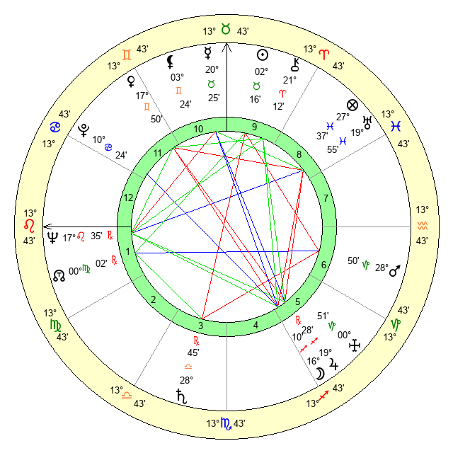 | Neptune | 17 Leo 35 | 0 Aries 49 | 19 Leo 41 |